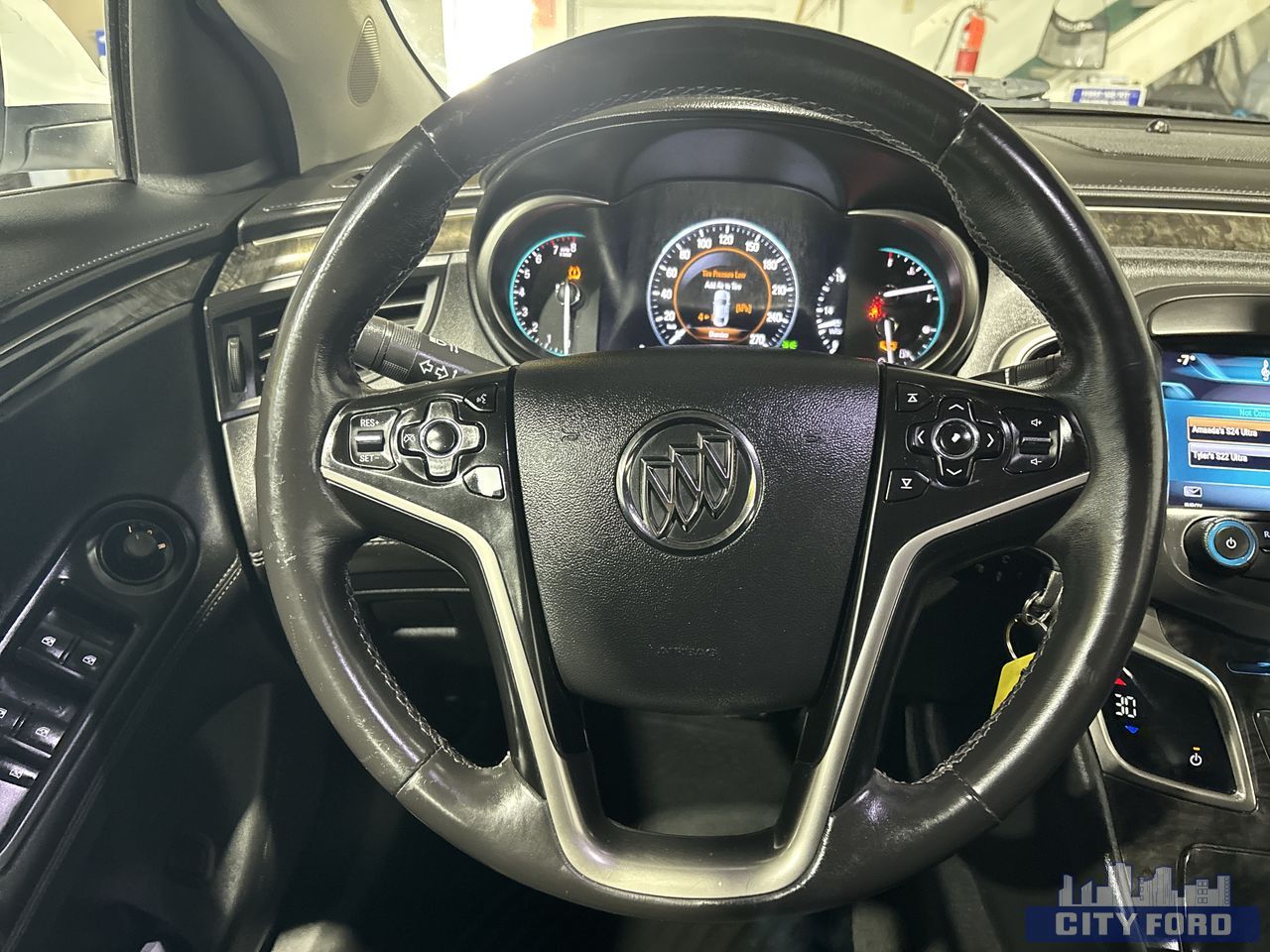 Personalization features includes driver seat memory, 2 specific Remote Keyless Entry fob controls for the driver identification greeting, audio system settings, station presets, content theft, automatic door locks, activation verification, perimeter lighting, delayed locking and (UD7) Ultrasonic Rear Parking Assist (Does not include (UD7) Ultrasonic Rear Parking Assist or driver seat memory.)Package: <br>Comfort and Convenience Package #1 includes (DD8) inside rearview auto-dimming mirror, (APG) driver 4-way power lumbar seat adjuster, (BTV) remote vehicle starter system and (UG1) Universal Home Remote<br>Mechanical: <br>Alternator, 120 amps (Not available with (LFX) 3.6L E85 capable V6 engine.), Axle, 2.64 final drive ratio (Not available with (LFX) 3.6L E85 capable V6 engine.), Battery, 60AH, maintenance free with rundown protection, heavy-duty 438 cold-cranking amps (Not available with (LFX) 3.6L E85 capable V6 engine.), Driver Shift Controls, tap-up/-tap-down, Drivetrain, front wheel drive, Exhaust, single-outlet stainless-steel with hidden turned down tip (Not available with (LFX) 3.6L E85 capable V6 engine.), Steering, power, non-variable ratio, electric (Not available with (LFX) 3.6L E85 capable V6 engine.), Suspension, front MacPherson strut, Suspension, rear 4-link, Transmission, 6-speed automatic, electronically controlled with overdrive includes Driver Shift Control (Not available with (LFX) 3.6L E85 capable V6 engine.)<br>Exterior: <br>Door handles, body-colour with chrome strips, Glass, Solar-Ray light-tinted, Glass, acoustic, laminated front-side and windshield, Grille, chrome waterfall, Headlamp control, automatic on and off, Headlamps, halogen composite with flash-to-pass feature, automatic on and off, automatic delay and warning buzzer, Lamp, LED centre high-mounted stop/brake (CHMSL), Lamps, rear stop tail, LED, Mirrors, outside heated power-adjustable, manual folding, Mouldings, bodyside, bright, Shutters, front lower grille, active, Tire Inflator Kit (Standard only with (LUK) 2.4L ECOTEC 4-cylinder engine with eAssist technology.), Tires, P225/55R17 all-season blackwall (Not available with (LFX) 3.6L E85 capable V6 engine.), Wheels, 17" (43.2 cm) machine-faced Silver painted aluminum (Not available with (LFX) 3.6L E85 capable V6 engine.), Windshield, solar absorbing, Wipers, front intermittent, structure-less wiper blades<br>Interior: <br>Air conditioning, dual-zone automatic climate control with individual climate settings for driver and front passenger, Air filtration system with Charcoal filter, Air vents, rear, heating/cooling, Armrest, rear centre with 2 integral cup holders, Assist handles, front passenger and rear outboard with coat hooks on rear passenger assist handles, Brake, parking, electronic, Cargo net, Compass display, Cruise control, Cup holders, 2 front console, covered, 2 rear armrest, Defogger, rear-window electric, Display, enhanced driver instrument information , 8" multi-colour configurable, Door locks, power programmable with lockout protection, Floor mats, carpeted front with anchors, Floor mats, carpeted rear, Head restraints, 4-way adjustable, front, up/down, fore/aft, Headrests, rear, outboard seats, adjustable (up/down) folds back onto rear package shelf, Lighting, custom interior front and rear reading, front and rear door and console Ice Blue ambient lighting, front foot well, puddle lights and instrument panel light pipe, Mirror, inside rearview auto-dimming, Personalization features includes driver seat memory, 2 specific Remote Keyless Entry fob controls for the driver identification greeting, audio system settings, station presets, content theft, automatic door locks, activation verification, perimeter lighting, delayed locking and (UD7) Ultrasonic Rear Parking Assist (Does not include (UD7) Ultrasonic Rear Parking Assist or driver seat memory.), Power outlet, front auxiliary, 12-volt, Power outlet, rear auxiliary, 12-volt, QuietTuning, Buick exclusive process to reduce, block and absorb noise and vibration to create a quiet interior cabin, Remote Keyless Entry, extended-range, Remote vehicle starter system, Retained accessory power power windows, audio system and sunroof remain operational after ignition is switched off for 10 minutes or until driver door is opened, Seat adjuster, driver 4-way power lumbar, Seat adjuster, driver 8-way power, Seat adjuster, passenger, 4-way manual, 2-way power vertical, Seat trim, cloth with leatherette bolsters, Seat, rear split-folding, Seats, front bucket with seatback map pockets, Sensor, humidity and windshield temperature, Shift knob, leather-wrapped, Sill plates, front, bright, Steering column, tilt and telescopic, manual, Steering wheel controls, mounted audio and cruise controls, Steering wheel, leather-wrapped, 4-spoke, Theft-deterrent system, content theft alarm, Theft-deterrent system, electrical, unauthorized entry, Universal Home Remote includes garage door opener, 3-channel programmable, Visors, driver and front passenger illuminated vanity mirrors, sliding, Windows, power with driver Express-Up/Down, Windows, power with front passenger Express-Up/Down, Windows, power, rear with Express-Down<br>Entertainment: <br>Antenna, integral rear, roof-mounted, body-colour, Audio system feature, 8" diagonal colour infotainment display, touch-screen, Audio system feature, USB port with iPod connectivity, Audio system feature, premium 7-speaker system, Audio system, Buick IntelliLink Radio, AM/FM stereo and CD player with 8" diagonal colour infotainment display, touch-screen, includes USB port and Bluetooth streaming for select phones and audio devices, voice recognition for audio, phone, phonebook and music selection, interactive gesture control, USB music playback, 60 preset favourites, SiriusXM Satellite Radio XM Select features 120 channels, including commercial-free music as well as the best in news, sports, talk, comedy and more; digital quality sound; includes 3 trial months, beyond which se