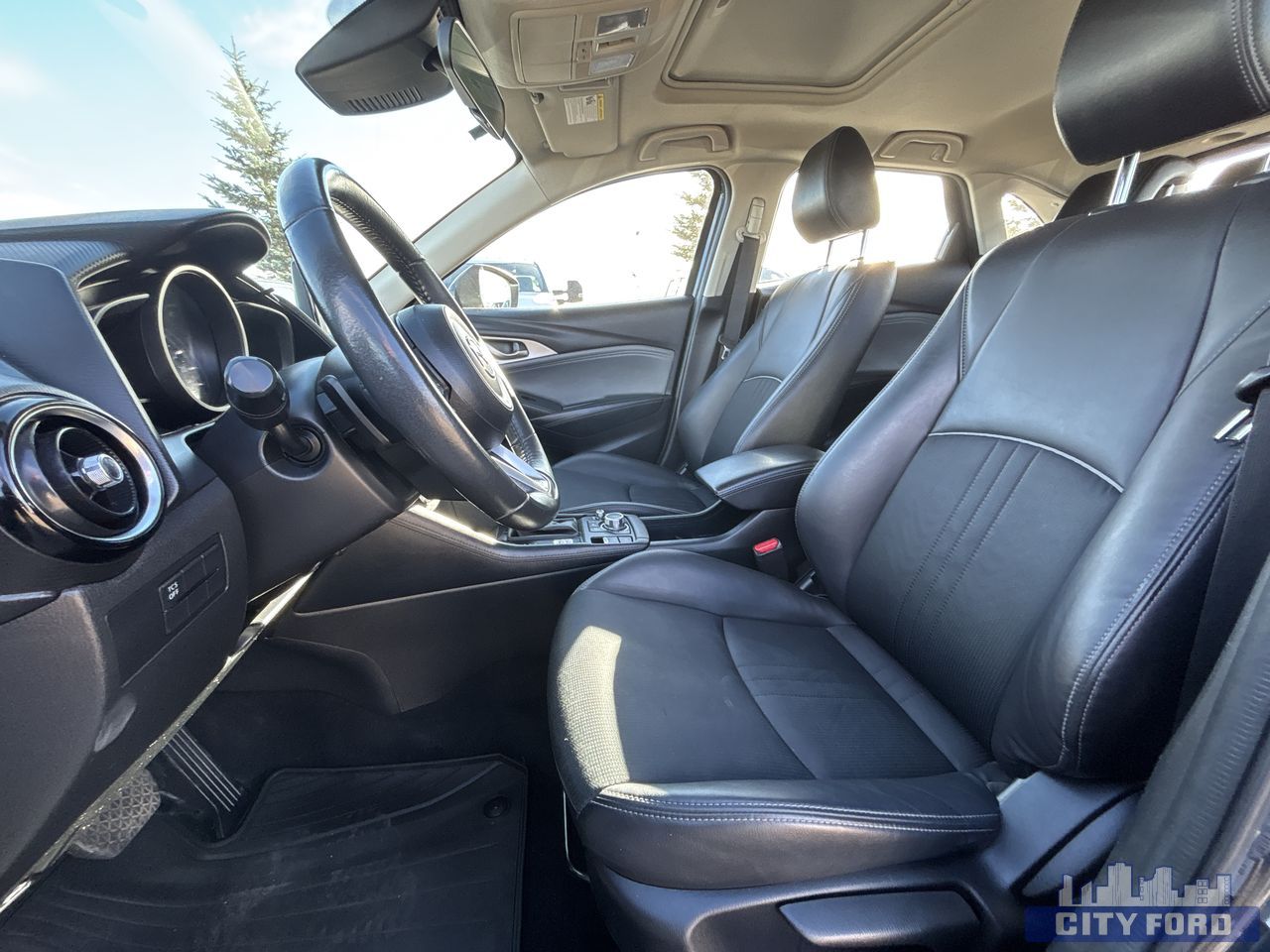 100 Amp Alternator, 4-Wheel Disc Brakes w/4-Wheel ABS, Front Vented Discs, Brake Assist, Hill Hold Control and Electric Parking Brake, 4.325 Axle Ratio, 45 L Fuel Tank, 6-Speed SKYACTIV-Drive Automatic -inc: manual-shift mode, drive selection switch and paddle shifters, 60-Amp/Hr Maintenance-Free Battery w/Run Down Protection, Automatic Full-Time All-Wheel, Electric Power-Assist Speed-Sensing Steering, Engine: 2.0L SKYACTIV-G DOHC 16-Valve 4-Cylinder, Front Anti-Roll Bar, GVWR: 1,810 kgs (3,990 lbs), Gas-Pressurized Shock Absorbers, Permanent Locking Hubs, Quasi-Dual Stainless Steel Exhaust w/Chrome Tailpipe Finisher, Strut Front Suspension w/Coil Springs, Torsion Beam Rear Suspension w/Coil Springs, w/Oil Cooler, Auto On/Off Projector Beam Halogen Daytime Running Headlamps w/Delay-Off, Black Bodyside Cladding and Black Wheel Well Trim, Black Side Windows Trim and Black Front Windshield Trim, Body-Coloured Door Handles, Body-Coloured Front Bumper w/Black Rub Strip/Fascia Accent, Body-Coloured Power Heated Side Mirrors w/Manual Folding and Turn Signal Indicator, Body-Coloured Rear Bumper w/Black Rub Strip/Fascia Accent, Chrome Grille, Compact Spare Tire Mounted Inside Under Cargo, Fixed Rear Window w/Fixed Interval Wiper and Defroster, Front License Plate Bracket, Fully Galvanized Steel Panels, Liftgate Rear Cargo Access, Light Tinted Glass, Lip Spoiler, Metallic Paint, Perimeter/Approach Lights, Rain Detecting Variable Intermittent Wipers, Steel Spare Wheel, Tires: 215/60R16 All-Season, Wheels: 16" Silver Finish Alloy, 1 LCD Monitor In The Front, Integrated Roof Antenna, Radio w/Seek-Scan, Clock, Speed Compensated Volume Control, Voice Activation and Radio Data System, Radio: AM/FM/HD w/Navigation-Ready -inc: 6 speakers, 7" colour touchscreen display w/Mazda Connect, HMI Commander switch, Apple CarPlay and Android Auto, 2 USB ports and auxiliary input, steering wheel mounted audio/Bluetooth controls, Bluetooth w/audio profile, Aha internet radio functionality, Stitcher internet radio funtionality, SMS text message functionality Requires navigation SD card accessory., 1 12V DC Power Outlet, 1 Seatback Storage Pocket, 60-40 Folding Bench Front Facing Fold Forward Seatback Rear Seat, Adjustable Heated Front Seats (3 Settings) -inc: manual 6-way adjustable driver seat and manual 4-way adjustable passenger seat, Air Filtration, Automatic Air Conditioning, Cargo Space Lights, Carpet Floor Trim, Cloth Door Trim Insert, Cruise Control w/Steering Wheel Controls, Day-Night Rearview Mirror, Delayed Accessory Power, Digital/Analog Appearance, Driver / Passenger And Rear Door Bins, Driver And Passenger Visor Vanity Mirrors w/Driver And Passenger Auxiliary Mirror, Driver Foot Rest, Driver Seat, Fade-To-Off Interior Lighting, Front Centre Armrest and Rear Centre Armrest, Front Cupholder, Front Map Lights, Full Carpet Floor Covering -inc: Carpet Front And Rear Floor Mats, Full Cloth Headliner, Full Floor Console w/Storage, Mini Overhead Console w/Storage and 1 12V DC Power Outlet, Glove Box, HVAC -inc: Underseat Ducts, Heated Leather/Metal-Look Steering Wheel, Immobilizer, Interior Trim -inc: Leatherette Instrument Panel Insert, Metal-Look Door Panel Insert, Piano Black Console Insert and Metal-Look Interior Accents, Leather/Metal-Look Gear Shifter Material, Manual Adjustable Front Head Restraints and Manual Adjustable Rear Head Restraints, Manual Tilt/Telescoping Steering Column, Outside Temp Gauge, Passenger Seat, Proximity Key For Push Button Start Only, Rear Cupholder, Remote Releases -Inc: Mechanical Fuel, Rigid Cargo Cover, Seats w/Cloth Back Material, Advanced Blind Spot Monitoring (ABSM) Blind Spot, Airbag Occupancy Sensor, Back-Up Camera, Collision Mitigation-Front, Curtain 1st And 2nd Row Airbags, Dual Stage Driver And Passenger Front Airbags, Dual Stage Driver And Passenger Seat-Mounted Side Airbags, Forward Collision Mitigation and Rear Cross Traffic Alert (RCTA), Low Tire Pressure Warning, Outboard Front Lap And Shoulder Safety Belts -inc: Rear Centre 3 Point, Height Adjusters and Pretensioners, Rear Child Safety Locks, Side Impact Beams<br><br>AMVIC LICENSED