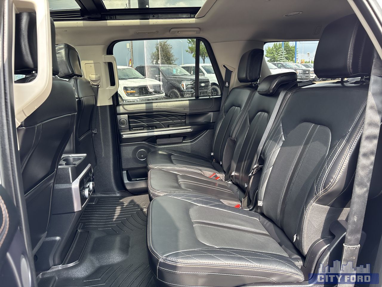 107 L Fuel Tank, 150 Amp Alternator, 3.31 Axle Ratio, 4-Wheel Disc Brakes w/4-Wheel ABS, Front And Rear Vented Discs, Brake Assist, Hill Descent Control, Hill Hold Control and Electric Parking Brake, 766.6 Kgs Maximum Payload, 78-Amp/Hr 675CCA Maintenance-Free Battery w/Run Down Protection, Auto Locking Hubs, Automatic w/Driver Control Ride Control Adaptive Suspension, Block Heater, Class IV Towing Equipment -inc: Hitch and Trailer Sway Control, Double Wishbone Front Suspension w/Coil Springs, Electric Power-Assist Speed-Sensing Steering, Electronic Transfer Case, Engine: 3.5L V6 EcoBoost -inc: auto start-stop technology, Front And Rear Anti-Roll Bars, GVWR: 3,311 kgs (7300 lbs), Gas-Pressurized Shock Absorbers, Multi-Link Rear Suspension w/Coil Springs, Part And Full-Time Four-Wheel Drive, Single Stainless Steel Exhaust, Trailer Wiring Harness, w/Driver Selectable Mode and Oil Cooler, Auto On/Off Reflector Led Low/High Beam Auto High-Beam Headlamps w/Delay-Off, Body-Coloured Front Bumper w/Metal-Look Rub Strip/Fascia Accent and 2 Tow Hooks, Body-Coloured Rear Step Bumper w/Metal-Look Rub Strip/Fascia Accent, Clearcoat Paint, Deep Tinted Glass, Express Open Sliding And Tilting Glass 1st And 2nd Row Sunroof w/Power Sunshade, Flip-Up Rear Window w/Fixed Interval Wiper and Defroster, Front Fog Lamps, Front License Plate Bracket, Full-Size Spare Tire Stored Underbody w/Crankdown, Galvanized Steel/Aluminum Panels, Grille w/Chrome Bar, Headlights-Automatic Highbeams, LED Brakelights, Metal-Look Bodyside Insert, Body-Coloured Bodyside Cladding and Body-Coloured Fender Flares, Metal-Look Door Handles, Metal-Look Power Heated Side Mirrors w/Driver Auto Dimming, Power Folding and Turn Signal Indicator, Perimeter/Approach Lights, Power Running Boards, Speed Sensitive Rain Detecting Variable Intermittent Wipers, Stainless Steel Side Windows Trim and Black Front Windshield Trim, Steel Spare Wheel, Tires: P285/45R22 BSW All-Season, Wheels: 22" 6-Spoke Painted Machined-Face Aluminum -inc: dark tarnish-painted pockets and Continuous-Control Damping (CCD), 2 LCD Monitors In The Front, Automatic Equalizer, Bluetooth Wireless Phone Connectivity, Digital Signal Processor, Regular Amplifier, Streaming Audio, Window Grid Antenna, 2 Seatback Storage Pockets, 4 12V DC Power Outlets, 4 12V DC Power Outlets and 1 120V AC Power Outlet, 6-Way Passenger Seat, 8-Way Driver Seat, Adaptive Cruise Control w/Stop & Go, Air Filtration, Analog Appearance, Cargo Area Concealed Storage, Cargo Net, Cargo Space Lights, Carpet Floor Trim and Vinyl/Rubber Mat, Compass, Dashboard Storage, Driver / Passenger And Rear Door Bins, Day-Night Auto-Dimming Rearview Mirror, Delayed Accessory Power, Driver And Passenger Visor Vanity Mirrors w/Driver And Passenger Illumination, Driver And Passenger Auxiliary Mirror, Driver Information Centre, Fade-To-Off Interior Lighting, Ford Co-Pilot360 Assist, FordPass Connect 4G Mobile Hotspot Internet Access, Front And Rear Map Lights, Front Centre Armrest, Front Cigar Lighter(s), Front Cupholder, Full Cloth Headliner, Full Floor Console w/Covered Storage, Mini Overhead Console w/Storage, 4 12V DC Power Outlets and 1 120V AC Power Outlet, Garage Door Transmitter, HVAC -inc: Underseat Ducts, Auxiliary Rear Heater and Headliner/Pillar Ducts, Heated Leather Steering Wheel w/Auto Tilt-Away, Illuminated Locking Glove Box, Interior Trim -inc: Genuine Wood/Metal-Look Instrument Panel Insert, Genuine Wood/Metal-Look Door Panel Insert, Genuine Wood/Metal-Look Console Insert, Chrome Interior Accents and Leather Upholstered Dashboard, Keypad, Leather Door Trim Insert, Manual w/Tilt Front Head Restraints and Fixed Rear Head Restraints, Metal-Look Gear Shifter Material, Outside Temp Gauge, Perimeter Alarm, Power Adjustable Pedals, Power Tilt/Telescoping Steering Column, Rear Cupholder, Securilock Anti-Theft Ignition (pats) Immobilizer, Tracker System, Trunk/Hatch Auto-Latch, Voice-Activated Touchscreen Navigation System -inc: pinch-to-zoom capability, SiriusXM Traffic and Travel Link service w/a 3-month subscription, Available in select markets only, Active Park Assist Front And Rear Parking Sensors, Aerial View Camera System, Airbag Occupancy Sensor, Back-Up Camera w/Washer, Blind Spot, Collision Mitigation-Front, Driver Monitoring-Alert, Dual Stage Driver And Passenger Front Airbags, Dual Stage Driver And Passenger Seat-Mounted Side Airbags, Ford Co-Pilot360 - Cross-Traffic Alert, Ford Co-Pilot360 - Pre-Collision Assist with Automatic Emergency Braking (AEB), Front Camera w/Washer, Left Side Camera, Mykey System -inc: Top Speed Limiter, Audio Volume Limiter, Early Low Fuel Warning, Programmable Sound Chimes and Beltminder w/Audio Mute, Outboard Front Lap And Shoulder Safety Belts -inc: Rear Centre 3 Point, Height Adjusters and Pretensioners, Rear Child Safety Locks, Right Side Camera, Safety Canopy System Curtain 1st, 2nd And 3rd Row Airbags, Side Impact Beams, Tire Specific Low Tire Pressure Warning<br><br>AMVIC LICENSED
