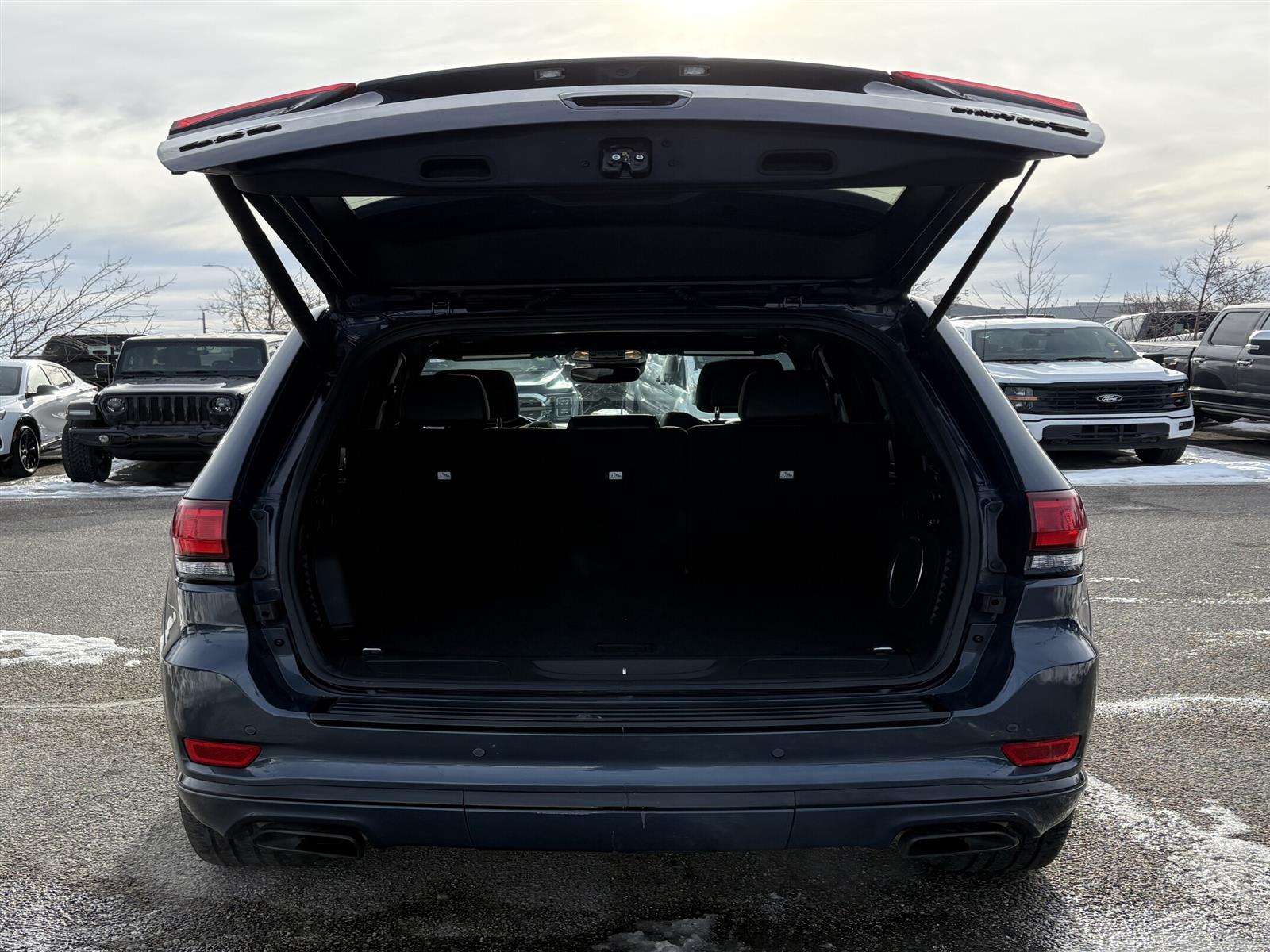 *We're just in the process of getting this vehicle ready for pictures! If you want to see pictures NOW, just let us know and we'll get some over to you! * *Conveniently located in the Calgary Auto Mall (corner of Glenmore & Deerfoot Trail), we're open Monday - Saturday. Knowledgeable Product Advisors are on-standby, ready to answer your questions and help you find the vehicle of your dreams! At Maclin Ford, we have over 100 years in the business on your side. Calgary's first Ford dealership and the first dealership to think of when it comes to buying and servicing your vehicle. Your car-buying experience should be a fun one and you should be treated like a VIP! AMVIC licensed dealership. * JEEP CHEROKEE LIMITED X 4X4 Exterior Color: Slate Blue Pearl Interior Color: Black interior / Black seats Interior: Heritage leatherfaced seats w/ perforated inserts Engine: 5.7L HEMI VVT V8 engine with FuelSaver MDS Transmission: 8speed TorqueFlite automatic transmission STANDARD EQUIPMENT (UNLESS REPLACED BY OPTIONAL EQUIPMENT) FUNCTIONAL / SAFETY FEATURES BlindSpot Monitoring and Rear CrossPath Detection ParkView Rear BackUp Camera ParkSense Rear Park Assist System Heavyduty 4wheel antilock disc brakes Advanced multistage front air bags Supplemental front seatmounted side air bags Supplemental side curtain air bags Keyless Enter 'n Go with pushbutton start Quadlens halogen headlamps Electronic Stability Control 4Wheel Traction Control Hill Start Assist Hill Descent Control Trailer Sway Control Uconnect 4C NAV with 8.4inch display Handsfree communication with Bluetooth streaming 1year SiriusXM Guardian subscription SiriusXM Travel Link SiriusXM Traffic 4G LTE WiFi hot spot OPTIONAL EQUIPMENT (May Replace Standard Equipment) Slate Blue Pearl $195 Customer Preferred Package 22G $7,000 Bodycolour fascia with Gloss Black insert 20x8inch Gloss Black aluminum wheels Limited X Package Sport hood Limited X badge Gloss Black exterior accents Gloss Black roof rails Liquid Titanium accents Dark Chrome dual exhaust tips Granite Crystal and Black grille Premium claddings Premium LED fog lamps Steering wheelmounted shift control Heritage leatherfaced seats w/ perforated inserts 265/50R20 Performance AllSeason tires Dark daylight opening mouldings Dark finish headlamp bezel Dark lens taillamps Pirelli brand tires Gloss Black Jeep badging CommandView dualpane panoramic sunroof Bixenon high intensity discharge headlamps LED daytime running lights Trailer Tow Group IV $950 Fullsize spare tire Heavyduty engine cooling Rear loadlevelling suspension Delete rear tow hook 4 and 7pin wiring harness Class IV hitch receiver ProTech Group $1,495 Lane Departure Warning with Lane Keep Assist Parallel & Perpendicular Park Assist with Stop Forward Collision Warning with Active Braking Advanced Brake Assist Rainsensing windshield wipers Adaptive Cruise Control with Stop 5.7L HEMI VVT V8 engine with FuelSaver MDS $3,295 700amp maintenancefree battery 3.09 rear axle ratio 230 mm rear axle GVWR: 3084 kg (6800 lb) 9 Alpine speakers with subwoofer $995 Active noise control system 506watt amplifier