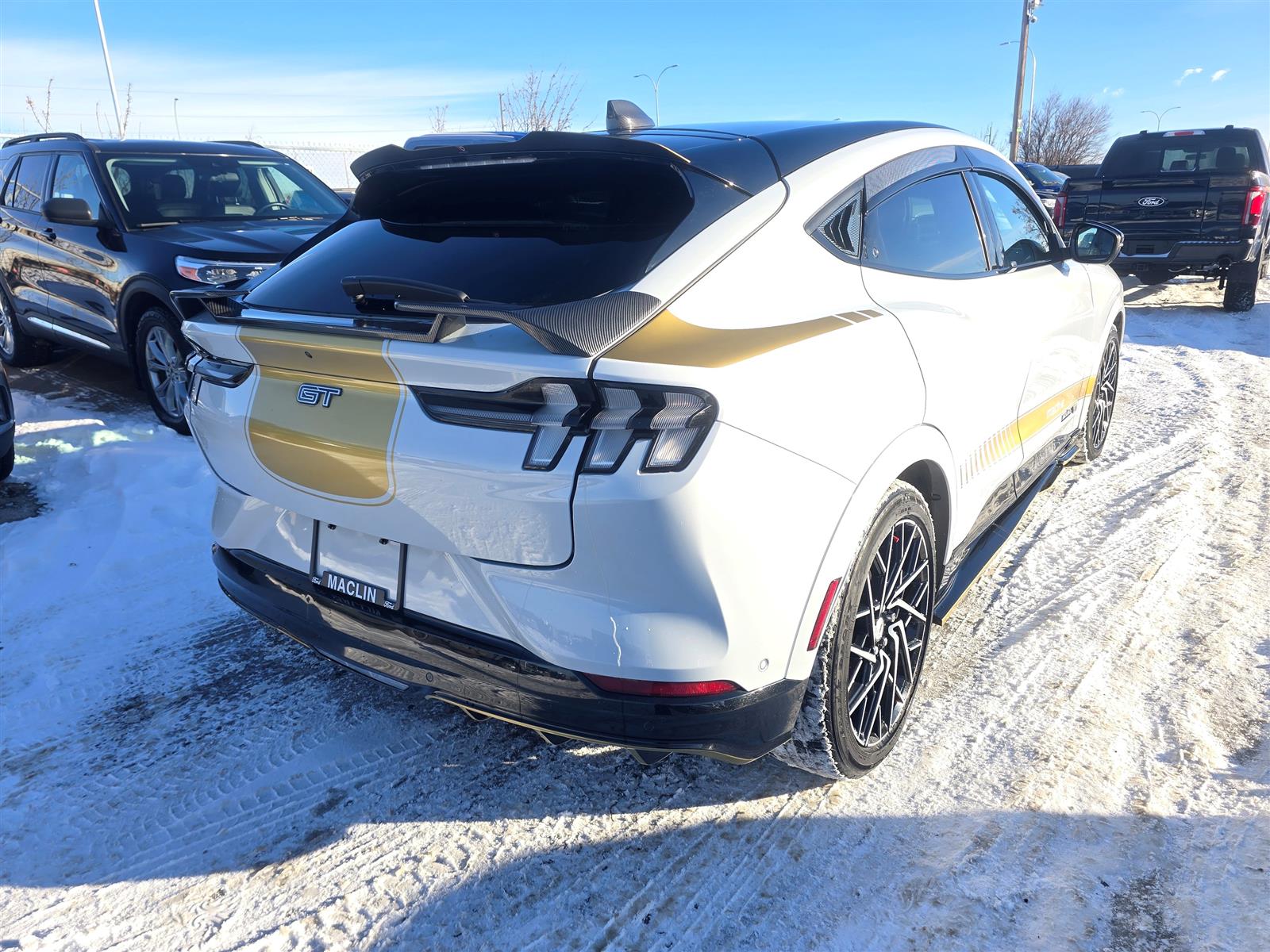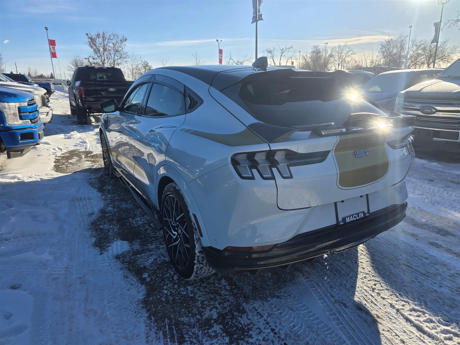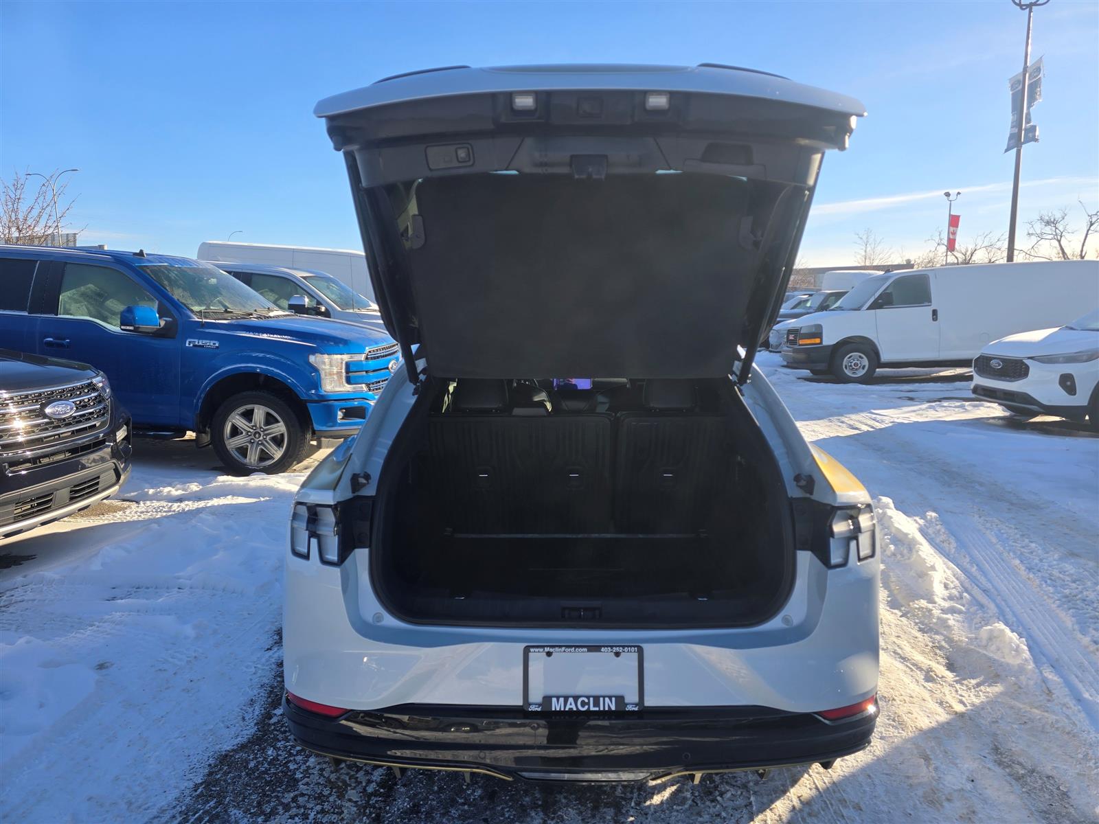 Year End Clearout on now! Get your best deal on every New and Used Vehicle at Maclin Ford - Calgary's Most Likeable Ford Store! 2022 FORD MUSTANG MACH-E PRFM/91KWH USABLE EXT BTTRY I SINGLE SPEED AUTOMATIC EQUIPMENT GROUP 400A OPTIONAL EQUIPMENT/OTHER 20" SUMMER TIRES (245/45R20) 20"MACH-FACE W/BLK-PNTD PKTS MAGNERIDE DAMPING SYSTEM PANORAMIC FIXED-GLASS ROOF INTERIOR PROTECTION PACKAGE .CARGO AREA PROTECTOR .FLR LNERS FRR/RR:NO CRPT MATS FORD CO-PILOT360 ACTIVE 2.0 .BLUECRUISE .360-DEGREE CAMERA ACTIVE PARK ASSIST - PREP KIT EXTERIOR ACTIVE GRILLE SHUTTERS E-LATCH DOORS FRUNK - DRAINABLE HEATED WIPER PARK LED HEADLAMPS LED SIG/PONY PROJECTN LAMP LED TAILLAMPS WITH SEQUENTIAL REAR TURN SIGNALS MIRRORS, DUAL POWER HEATED FOLDING WITH MEMORY RED PAINTED BRAKE CALIPERS SPOILER, REAR WIPERS - RAIN-SENSING INTERIOR 1 TOUCH UP/DOWN FRONT/REAR WINDOWS A/C, DUAL ZONE ELECTRONIC AMBIENT LIGHTING B&O AUDIO SYSTEM FORD PERFORMANCE PWR/HTD 8-WAY FRONT SEATS, DRV MEM IP CLUSTR 10.2" DIGTAL SCR MIRROR, AUTODIMMING ROTARY GEAR SHIFT DIAL SCUFF PLATE W/PONY GRAPHIC SEATS, REAR SPLIT FOLD VISORS, DUAL ILLUMINATED FUNCTIONAL 10.5KW AC ONBOARD CHARGER 15.5"SCR W/APPLINK CNCTD BLT-IN NAV(3-YR INC) FORD CO-PILOT360ASSIST2.0 FORDPASS CONNECT INTELL ACCESS W/PUSH START J1772 CCS COMBO CONNECTOR MOBILE POWER CORD ONE PEDAL DRIVE PHONE AS A KEY SELECTABLE DRIVE MODES SYNC 4 WIRELESS CHARGING PAD SAFETY/SECURITY ADVANCED SECURITY PACK AIRBAGS FRONT DUAL STAGE DRIVER KNEE FR/RR SIDE IMP/CURTAIN LATCH CHILD RESTRAINT SYS TIRE PRESSURE MONITOR SYS Open 6 days a week conveniently located in the Calgary Auto Mall at the corner of Glenmore & Deerfoot Trail. Call, Click or Visit and find out why we're Calgary's Most Likeable Ford store today! We are an AMVIC licensed dealership.
