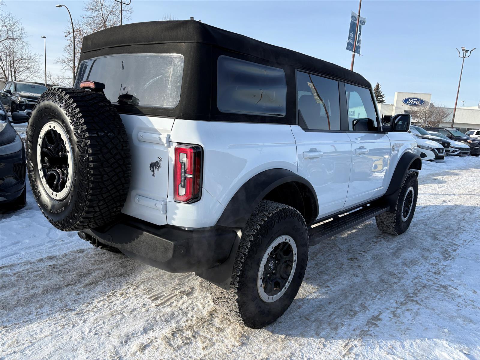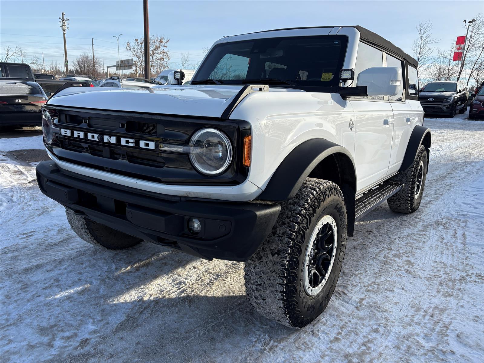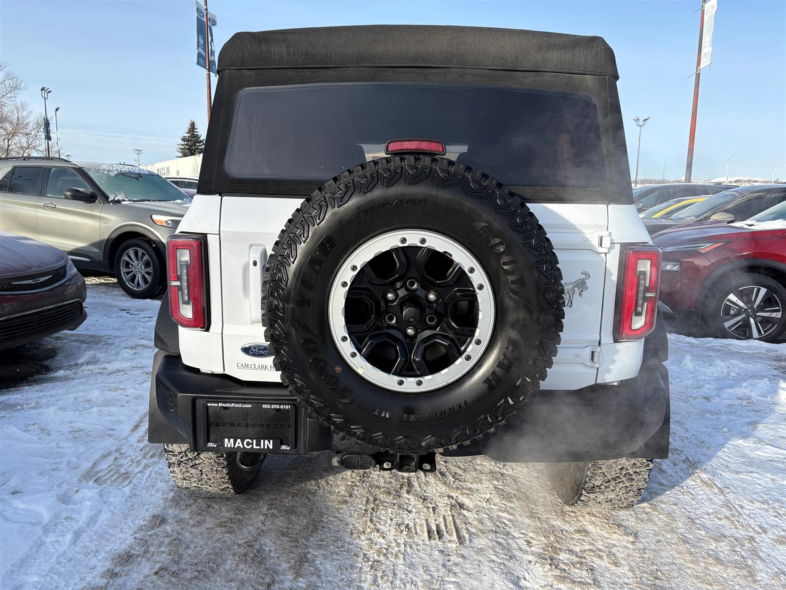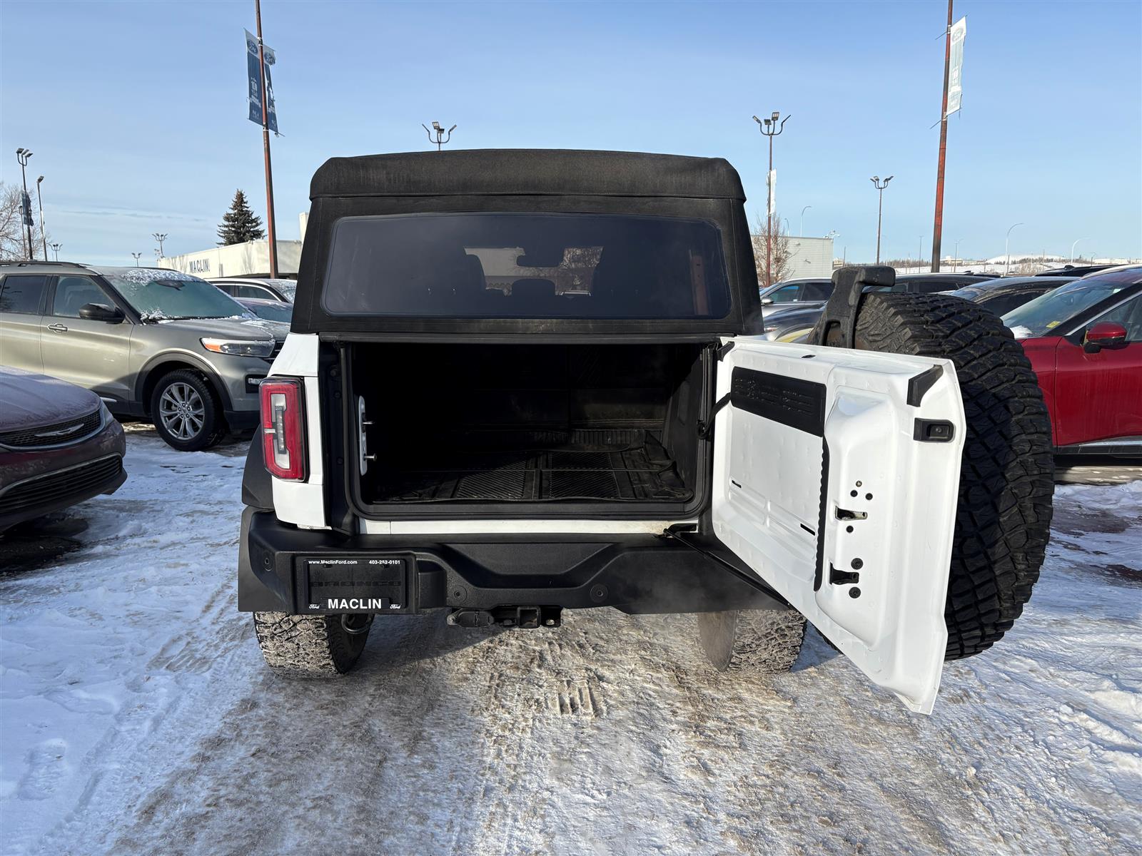 Year End Clearout on now! Get your best deal on every New and Used Vehicle at Maclin Ford - Calgary's Most Likeable Ford Store! 2023 BRONCO OUTER BANKS 2.7L ECOBOOSAT V6 10 SPEED AUTOMATIC EQUIPMENT GROUP 314A OUTER BANKS SERIES HIGH PACKAGE 12" LCD CTR STACK TOUCHSCREEN 360-DEGREE CAMERA LUX PACKAGE ADAPTIVE CRUISE CONTROL HEATED STEERING WHEEL WIRELESS CHARGING PAD OPTIONAL EQUIPMENT/OTHER LT315/70R17 M/T TIRES (35") CNCTD BLT-IN NAV(3-YR INC) SASQUATCH PACKAGE .17"BLK ALM BEADLCK ALLOY RING .4.7/REAR AXLE-LOCKING DIFF .FRONT AXLE-LOCKING DIFFRNTL SOFT TOP, CLOTH W/PREP KIT 50 STATE EMISSIONS NO CHARGE TOWING CAPABILITY AM/FM,10 SPKRS,SDARS AUXILIARY SWITCHES LTHR-TRM/VINYL GREY/NAVY STS EXTERIOR ACTIVE GRILLE SHUTTERS AUTO HIGH BEAMS EASY FUEL CAPLESS FILLER FENDER TIE-DOWN HOOKS MIRRORS, FOLD/PWR/HEAT TOW HOOKS, FRONT AND REAR TRAILER SWAY CONTROL TUBE STEP, POWDER COATED WIPERS, FRONT INTERMITTENT INTERIOR 1TOUCH UP/DWN DRV/PASS WIN A/C, DUAL ZONE ELECTRONIC DIGITAL IP CLUSTER - 8" GLOVE BOX, LOCKING GRAB HANDLES, DRVR/PASS ILLUMINATED ENTRY POWERPOINTS, 12V SEATS REAR 60/40 SPLT FOLD SMART CHARGING USB PORTS STEER WHEEL, LEATHER FUNCTIONAL MID PACKAGE AUTO START/STOP BRAKES, 4-WHEEL DISC FORDPASS CONNECT HILL START ASSIST PRE-COLLISION ASSIST W/AEB REAR VIEW CAMERA REMOTE KEYLESS ENTRY STABILIZER BAR, FRONT SYNC4 W/EVR TERRAIN MGMT SYSTEM W/G.O.A.T. MODES TOOL KIT - FOR REMOVABLE DOORS/TOPS SAFETY/SECURITY ADVANCETRAC W/ ROLL STABILITY CONTROL AIRBAGS, DRIVER & PASS LATCH CHILD RESTRAINT SYS PERIMETER ALARM PERSONAL SAFETY SYSTEM SAFETY CANOPY TIRE PRESSURE MONITOR SYS Open 6 days a week conveniently located in the Calgary Auto Mall at the corner of Glenmore & Deerfoot Trail. Call, Click or Visit and find out why we're Calgary's Most Likeable Ford store today! We are an AMVIC licensed dealership.