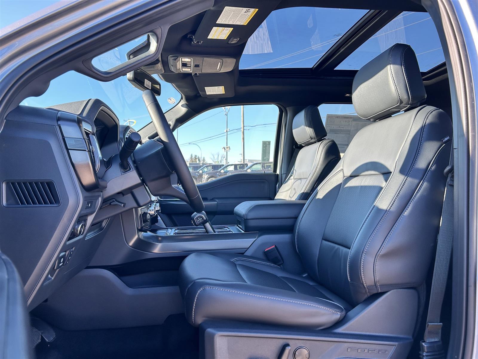 3.5L V6 EcoBoost | Four Wheel Drive | Navigation | Heated & Cooled Seats | Remote Engine Start | Tow Hitch Performance & Driving Confidence: The 2025 Ford F-150 Lariat SuperCrew is powered by a 3.5L V6 EcoBoost with auto start/stop technology and turbocharged delivery for responsive acceleration. Four wheel drive, all-terrain tires, tow hooks and a tow hitch deliver capability for towing and varied Canadian road conditions, while stability control, traction control, ABS with 4-wheel disc brakes, and cruise control steering assist support confident handling and braking. Interior Comfort & Technology: The cabin combines premium synthetic seating with heated and cooled front seats, heated steering wheel, seat memory, and power-adjustable driver and passenger seats with lumbar support. Technology highlights include Navigation, WiFi Hotspot, Smart Device Integration, Aerial View Display System, power folding mirrors, remote engine start, keyless entry and keyless start, universal garage door opener, and convenient running boards and floor mats. Safety & Assistance: Driver aids include Adaptive Cruise Control, Lane Keeping Assist, Lane Departure Warning, Blind Spot Monitor, Cross-Traffic Alert, Front and Rear Collision Mitigation, Evasion Assist, Driver Monitoring, Rear Parking Aid and Back-Up Camera. Additional safety features include Tire Pressure Monitor, Brake Assist, child safety locks, multi-zone A/C and a full complement of airbags. Key Features 3.5L V6 EcoBoost with auto start/stop technology Four Wheel Drive with all-terrain tires Navigation System Heated and Cooled Front Seats with Seat Memory Remote Engine Start and Keyless Entry / Keyless Start Tow Hitch and Tow Hooks Adaptive Cruise Control Blind Spot Monitor and Cross-Traffic Alert Aerial View Display System and Back-Up Camera WiFi Hotspot and Smart Device Integration Power Driver and Passenger Seats with Adjustable Lumbar Heated Steering Wheel Power Folding Mirrors and Running Boards Stability Control, Traction Control, ABS with 4-Wheel Disc Brakes What Reviewers Say Kelley Blue Book often highlights the F-150's capable powertrain options and practical features, while Car and Driver typically praises the comfortable cabin and useful tech that suit both towing and daily driving.