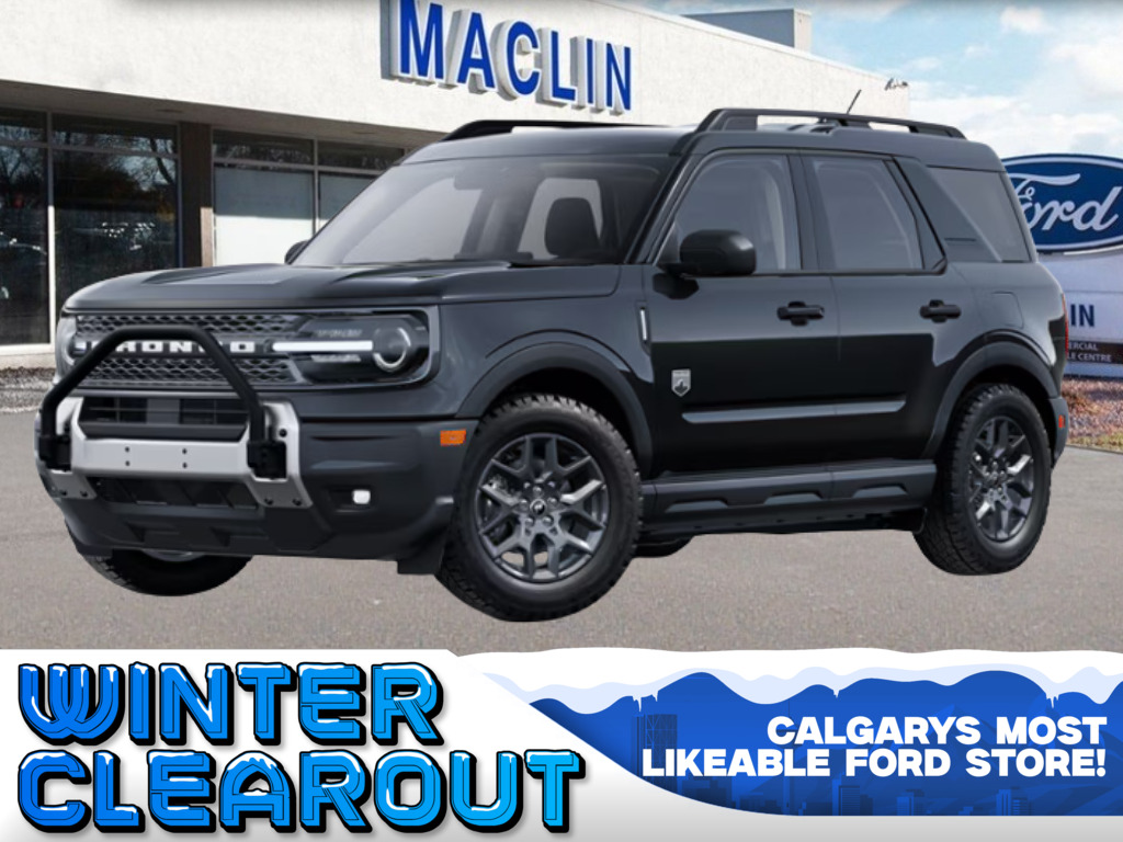 Winter Clearout on now! Get your best deal on every New and Used Vehicle at Maclin Ford - Calgarys Most Likeable Ford Store! This brand new SHADOW BLACK 2026 FORD BRONCO SPORT BIG BEND is powered by a 1.5L ECOBOOST ENGINE THAT'S PAIRED WITH AN 8-SPD AUTO TRANSMISSION. Key highlights of this FORD BRONCO SPORT include: EQUIPMENT GROUP 200A: BRUSH GUARD, BLACK DIAMOND OFF ROAD PACKAGE, 17" CARBON GREY PAINTED WH, CONN PKG: 1 YR INCL W/FORD APP, CONVENIENCE PACKAGE, ADVANCE TRAC STABILITY SYS, AIR CONDITIONING (EATC), AUTO START/STOP, BLIS W/CROSS TRAFFIC, EASY FUEL CAPLESS FILLER, HILL START ASSIST, INTELLIGENT ACCESS, LANE KEEPING SYSTEM, PRE-COLLISION ASSIST W/AEB, REAR PARKING SENSORS, REMOTE VEHICLE START, REVERSE CAMERA SYSTEM, AND SO MUCH MORE!!! Calgary's Most Likeable Ford Store! Conveniently located in the Calgary Auto Mall at the corner of Glenmore & Deerfoot Trail and we're open 6 days a week. Our knowledgeable Product Advisors are ready to answer your questions and help you find the right vehicle for you! Maclin Ford has been in the automotive retail business for over 100 years. We are an AMVIC licensed dealership. Excluding GST, all fees and levies are included