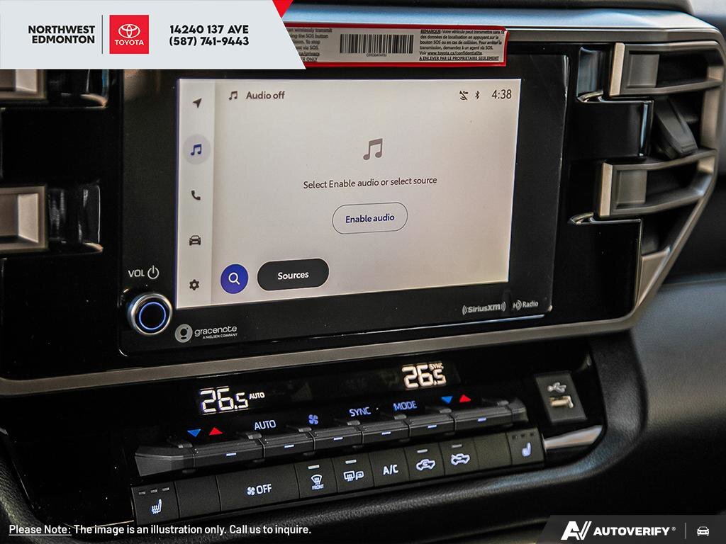 This Toyota Tundra boasts a Twin Turbo Regular Unleaded V-6 3.4 L/210 engine powering this Automatic transmission. Wireless Phone Connectivity, Wheels: 18 Styled Steel, Vehicle Stability Control (VSC) Electronic Stability Control (ESC). This Toyota Tundra Features the Following Options Variable Intermittent Wipers w/Heated Wiper Park, Urethane Gear Shifter Material, Turn-By-Turn Navigation Directions, Trip Computer, Transmission: 10-Speed Direct Shift Automatic, Transmission w/Sequential Shift Control and Oil Cooler, Trailer Wiring Harness, Tracker System, Tires: P245/75R18, Tire Pressure Monitor System (TPMS) Tire Specific Low Tire Pressure Warning. Visit Us Today Live a little- stop by Toyota Northwest Edmonton located at 14240 137 Ave NW, EDMONTON, AB T5L 5H7 to make this car yours today!