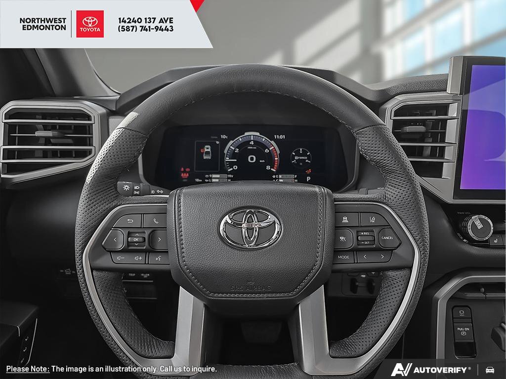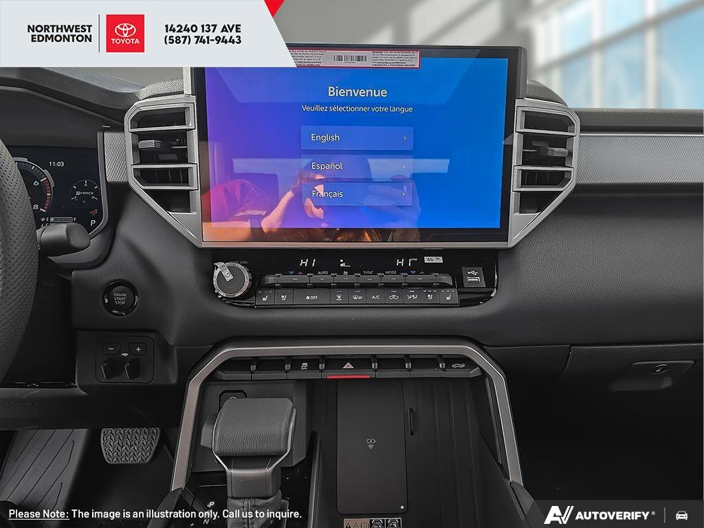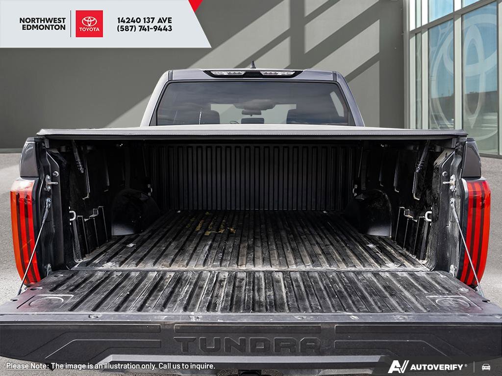 This Toyota Tundra boasts a Twin Turbo Regular Unleaded V-6 3.4 L/210 engine powering this Automatic transmission. Wireless Phone Connectivity, Wheels: 20 Black Alloy, Wheels w/Locks. This Toyota Tundra Comes Equipped with These Options Vehicle Stability Control (VSC) Electronic Stability Control (ESC), Variable Intermittent Wipers w/Heated Wiper Park, Turn-By-Turn Navigation Directions, Trip Computer, Transmission: 10-Speed Direct Shift Automatic -inc: drive mode select (sport, eco and normal modes), Transmission w/Driver Selectable Mode, Sequential Shift Control and Oil Cooler, Trailer Wiring Harness, Tracker System, Tires: 265/60R20, Tire Pressure Monitor System (TPMS) Tire Specific Low Tire Pressure Warning. Stop By Today Stop by Toyota Northwest Edmonton located at 14240 137 Ave NW, EDMONTON, AB T5L 5H7 for a quick visit and a great vehicle!